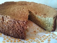Este bizcocho no necesita levadura, simplementte se utilizan claras de huevo a punto de nieve para hacer subir el pastel.